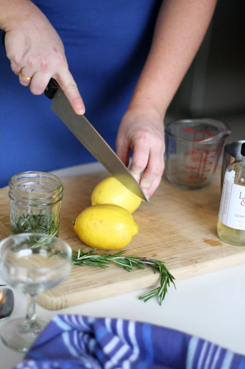 What's more refreshing than lemonade on a hot summer day?  Only perhaps this cocktail, the Rosemary Lemon Drop!  Made from freshly squeezed juice, fresh herbs, and a touch of Liber & Co. Gum Syrup, this twist on the classic lemon drop will put your cocktail shaker to good use.  A glass rimmed with Quai Sud Lemon Sugar ensures that your sweet tooth is satisfied.